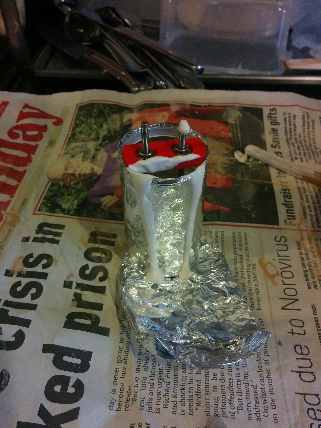 Once assembled, I then wrapped the whole contraption in silver foil, leaving a gap at the top to allow me to fill it with plaster of Paris.