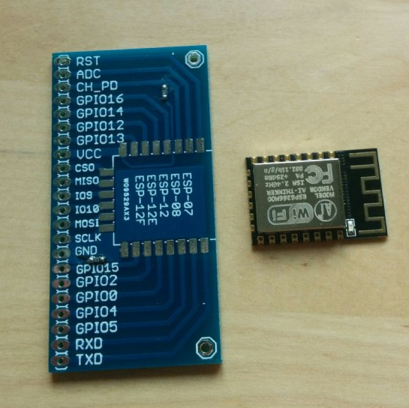 In typical fashion, the cheapest place to get these boards in China via ebay. I bought my first ESP8266 for £2.451 with a breakout board for £1.99. The latter is not essential, but does make life easier, as the board is produced at 1 mm pitch, and therefore is not breadboard friendly.