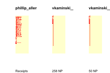 We applied our previous learning of converting an image of a digit into a matrix to the Enron spreadsheet data set. We used purrr and tidyxl to read in many worksheets from many workbooks. We decided on a sensible view range through data exploration of what was typical for an Enron spreadsheet. We then converted the existing matrix structure of a spreadsheet to a square matrix with 0 for empty cells and 1 for those with content. We then explored these data using visualisation. We extended the t-SNE method to this data set, with a larger matrix for every worksheet. This unsupervised approach seemed promising for separating out similar worksheets into clusters, however the problem was somewhat contrived t-SNE components probably not that useful as features, depending on the problem.