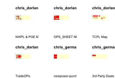 ## [6] "vladi_pimenov__41080__Basis Spreads for Mike Grigsby.xlsx"File names presumably have the sender (or receiver prefixed) and are of the .xlsx type, thus we need the tidyxl package to read them in. Some spreadsheets it is possible to guess what the contents might be from title alone, others the theme would only be apparent on opening.